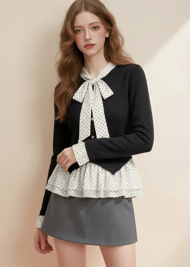 LAYERED LOOK RIBBON ACCENT TOP - ANLEM