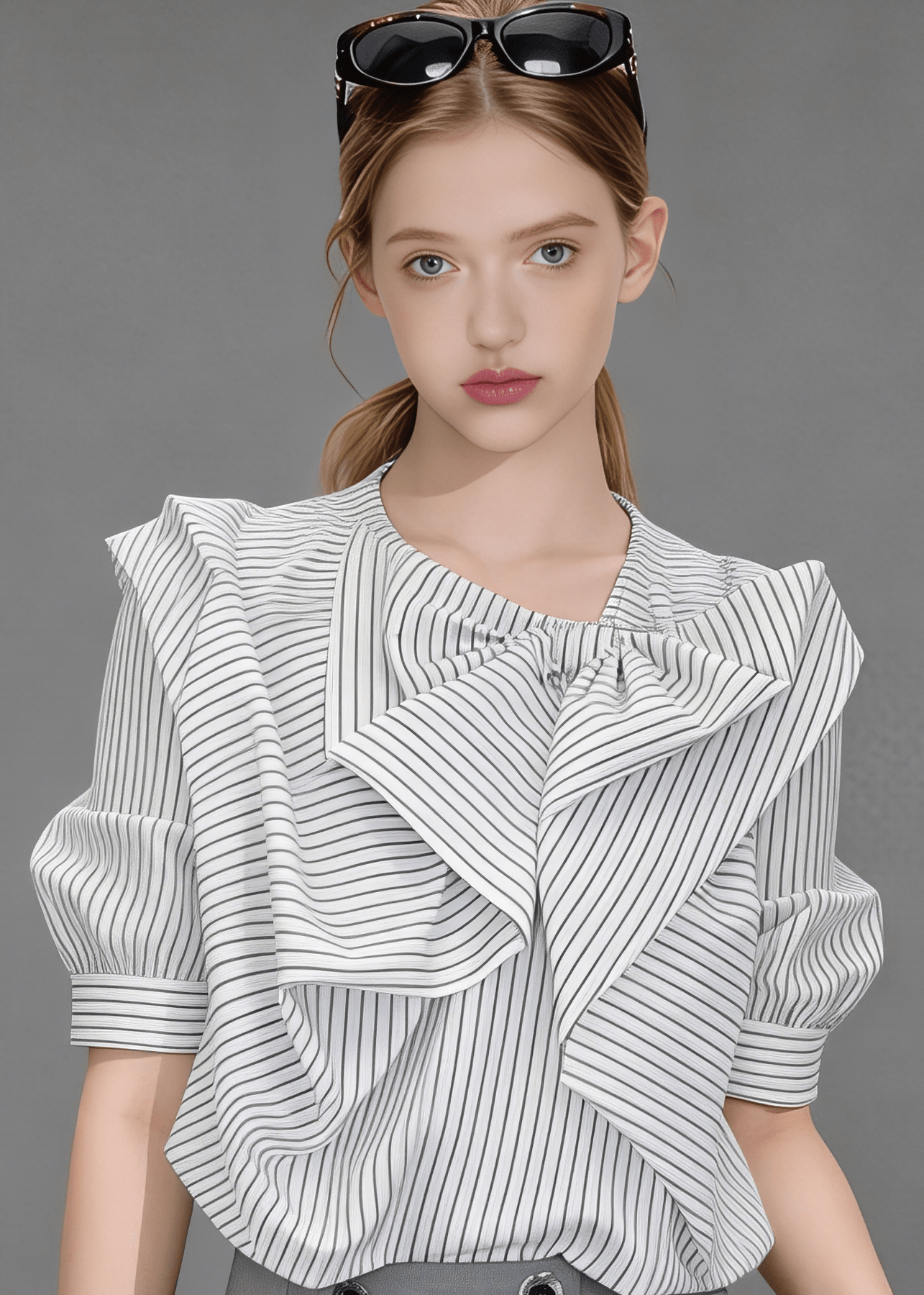 ストライプ×アシメフリルで魅せる洗練ブラウス