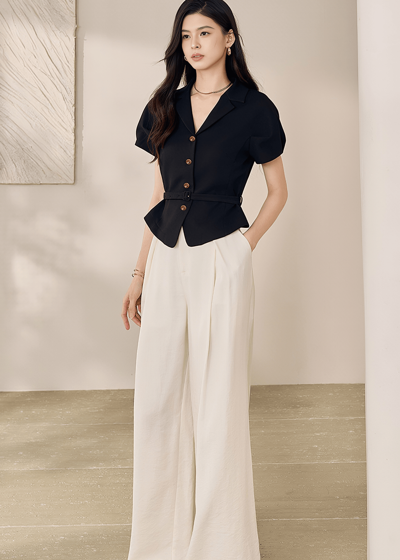 TAILORED BELTED SHORT - SLEEVE BLAZER - ANLEM