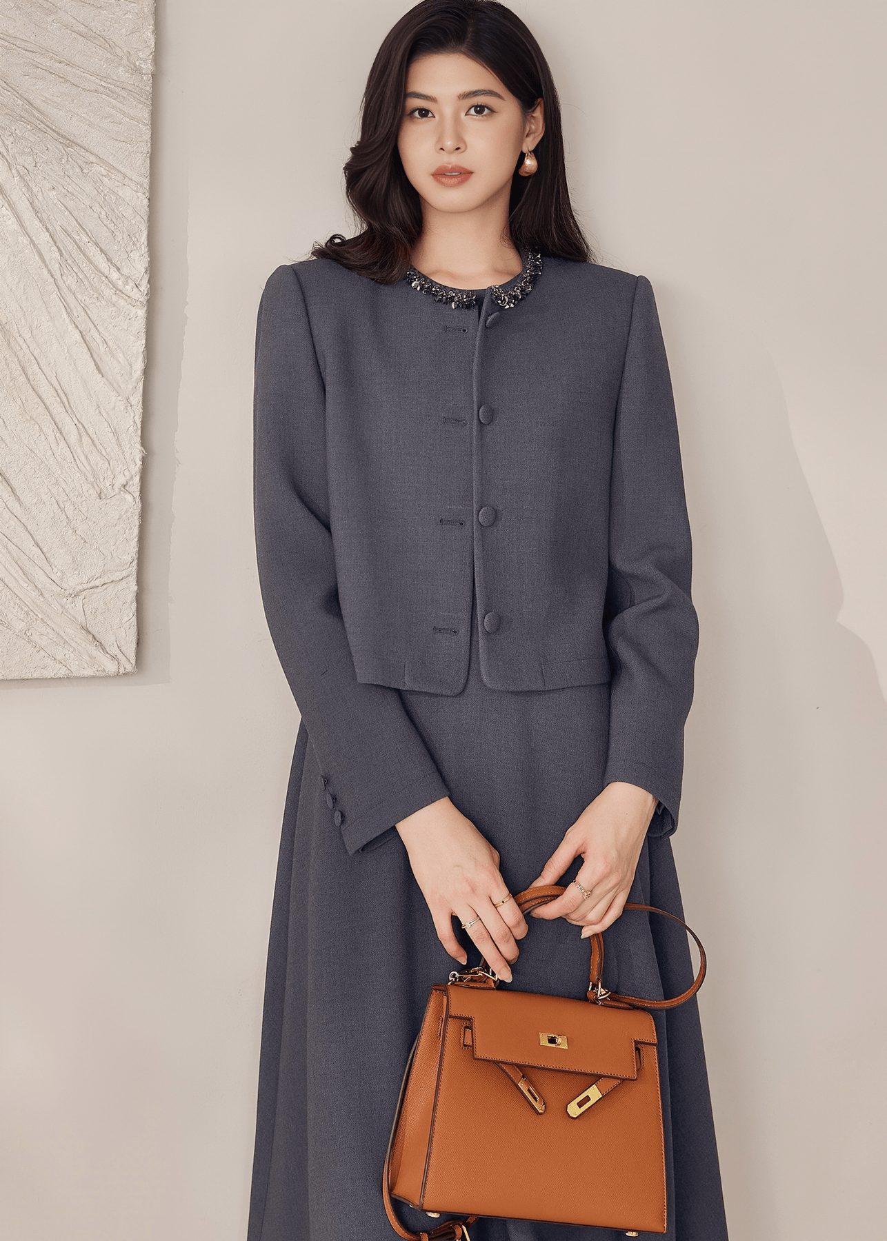 CHIC COLLARLESS JACKET&DRESS - ANLEM